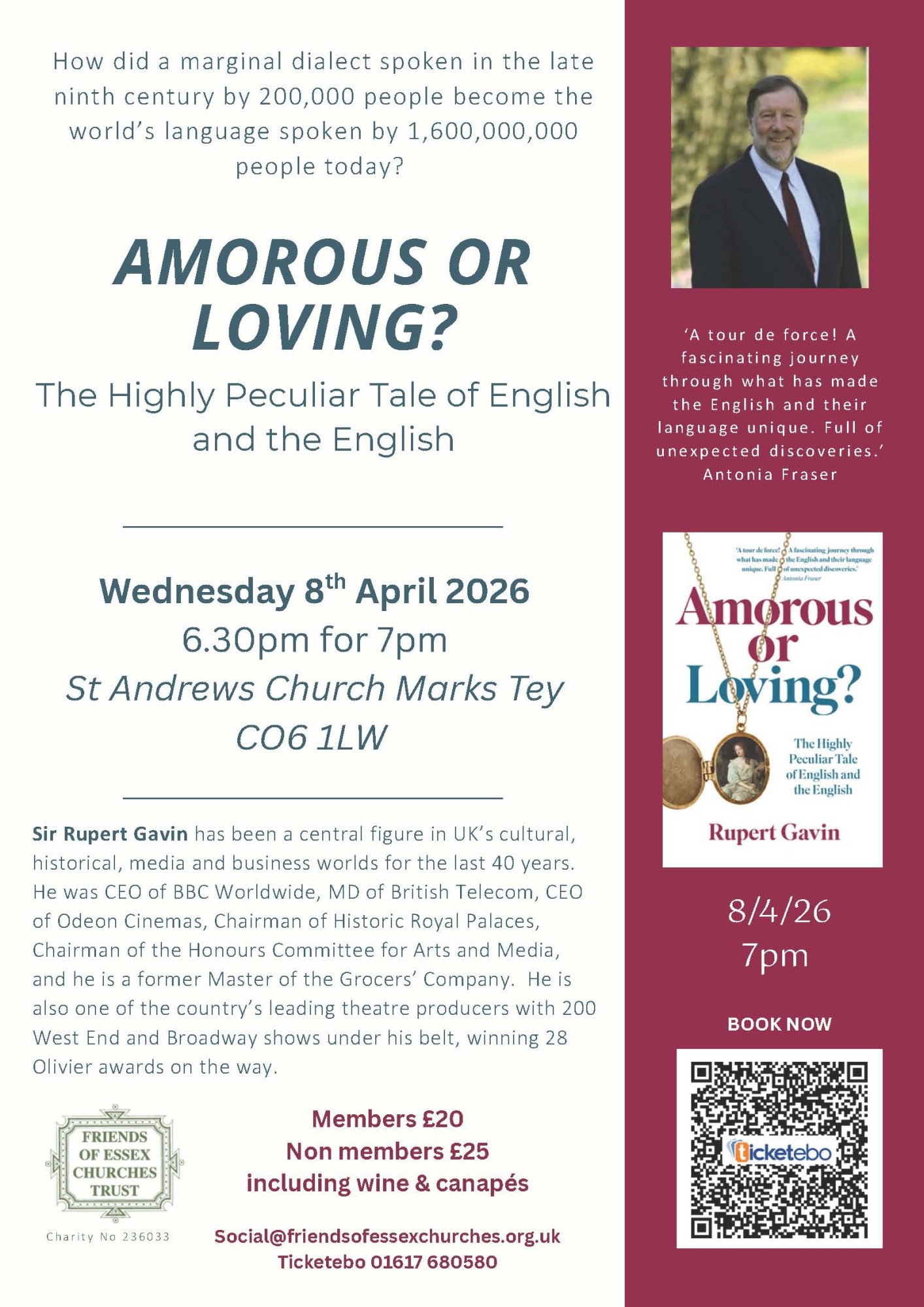 Tickets £20 for members and £25 for non-members to include wine and canapés available from social@friendsofessexchurches.org.uk or Ticketebo (telephone: 01617 680580)
